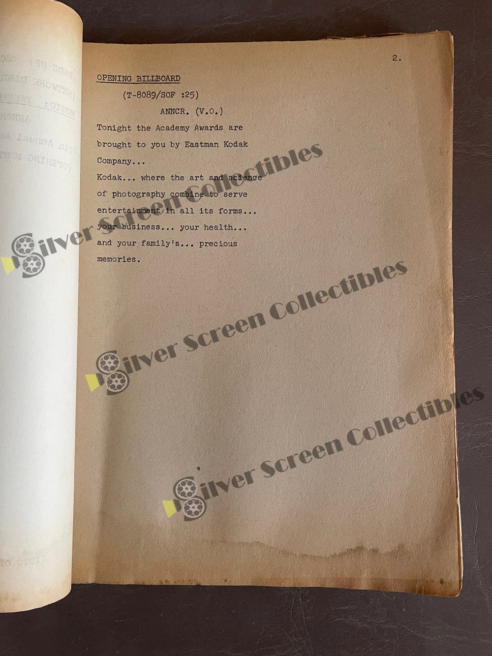 Note: This is a vintage collectible/memorabilia item, and we are selling 146 pages of typed words with no implied "rights" of any sort. The "Academy Awards" are copyrighted by The Academy of Motion Picture Arts and Sciences.