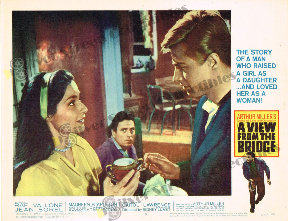 Eddie Carbone, a Brooklyn longshoreman is unhappily married to Beatrice and unconsciously in love with Catherine, the niece that they have raised from childhood. Into his house come two brothers, illegal immigrants, Marco and Rodolpho. Catherine falls in love with Rudolpho; and Eddie, tormented but unable to admit even to himself his quasi-incestuous love, reports the illegal immigrants to the authorities.