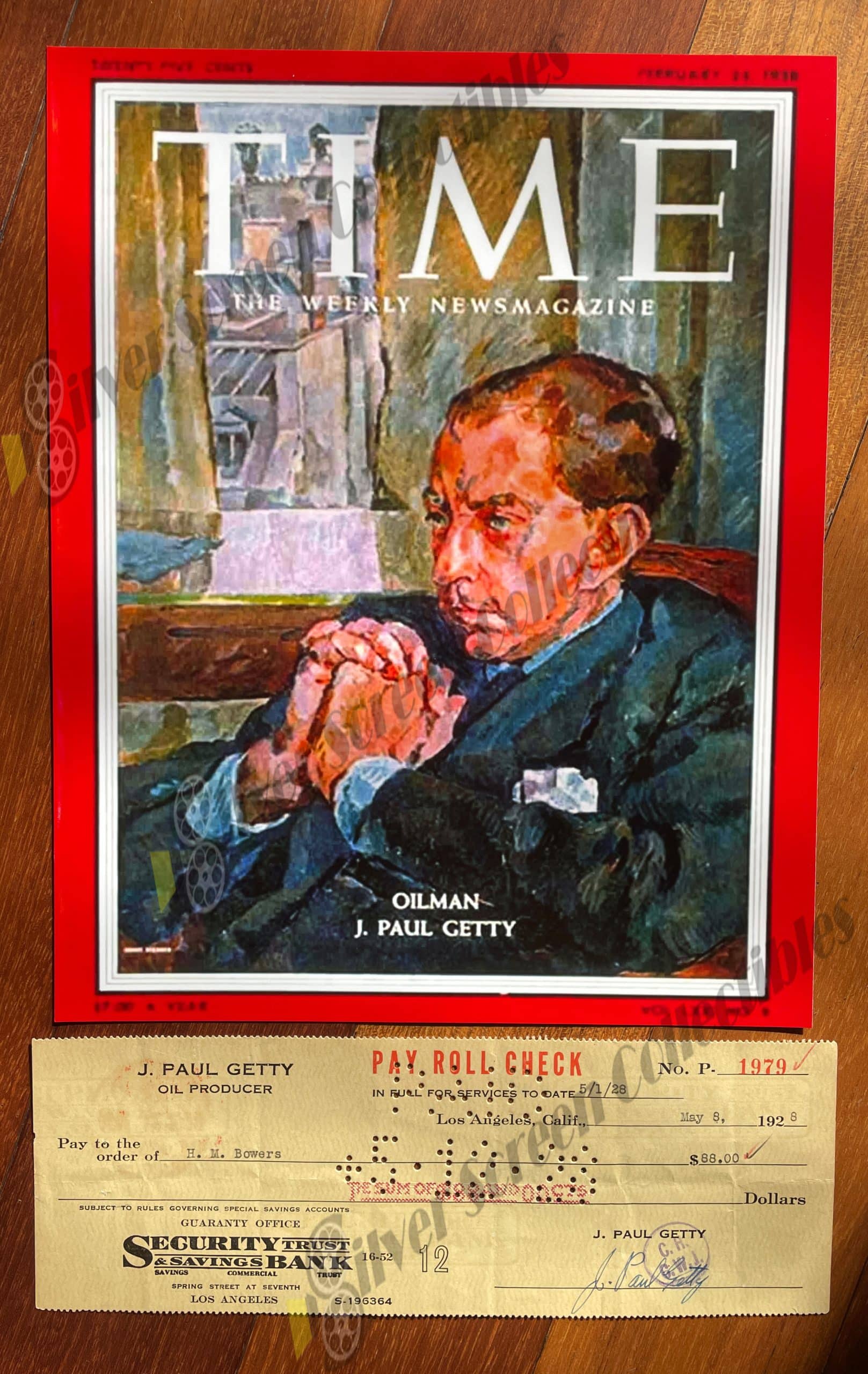 Fun fact: He received $200 per day from Warner Brothers to film Rebel Without a Cause (1955) at his empty Los Angeles Mansion. Along with the check, we are including a great (reproduction) photo of his Time Magazine cover, that could be used to frame with the check.Condition: Very Fine - With bank stamps/punches and markings.