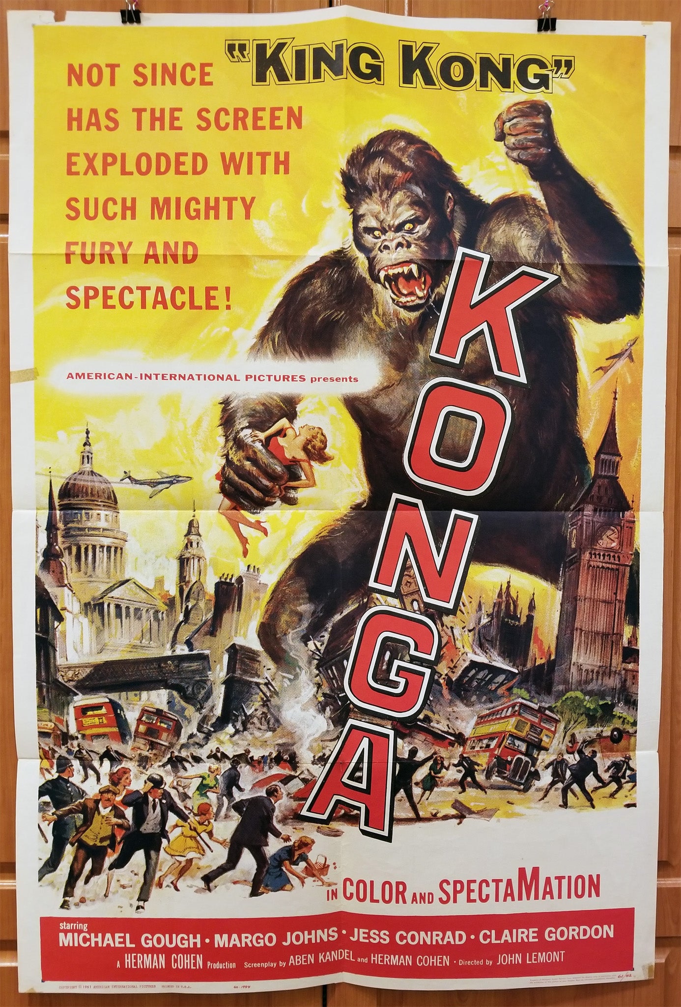 Dr.Decker comes back from Africa after a year, presumed dead. During that year, he came across a way of growing plants and animals to an enormous size. He brings back a baby chimpanzee to test out his theory. As he has many enemies at home, he decides to use his chimp, 'Konga' to 'get rid of them'. Then Konga grows to gigantic proportions and reaks havoc all over the city of London!!