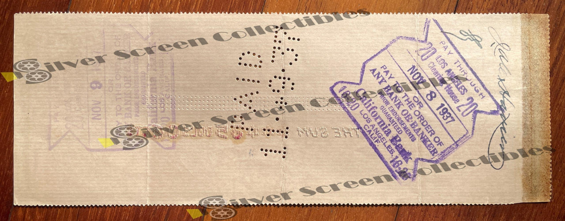 The Statue of Libido herself. Along with the check, we are including a great (reproduction) photo that could be used to frame with the check.Condition: Very Fine - With bank stamps and markings, as well as a browned left edge (probably from being attached to a ledger or something along that line).