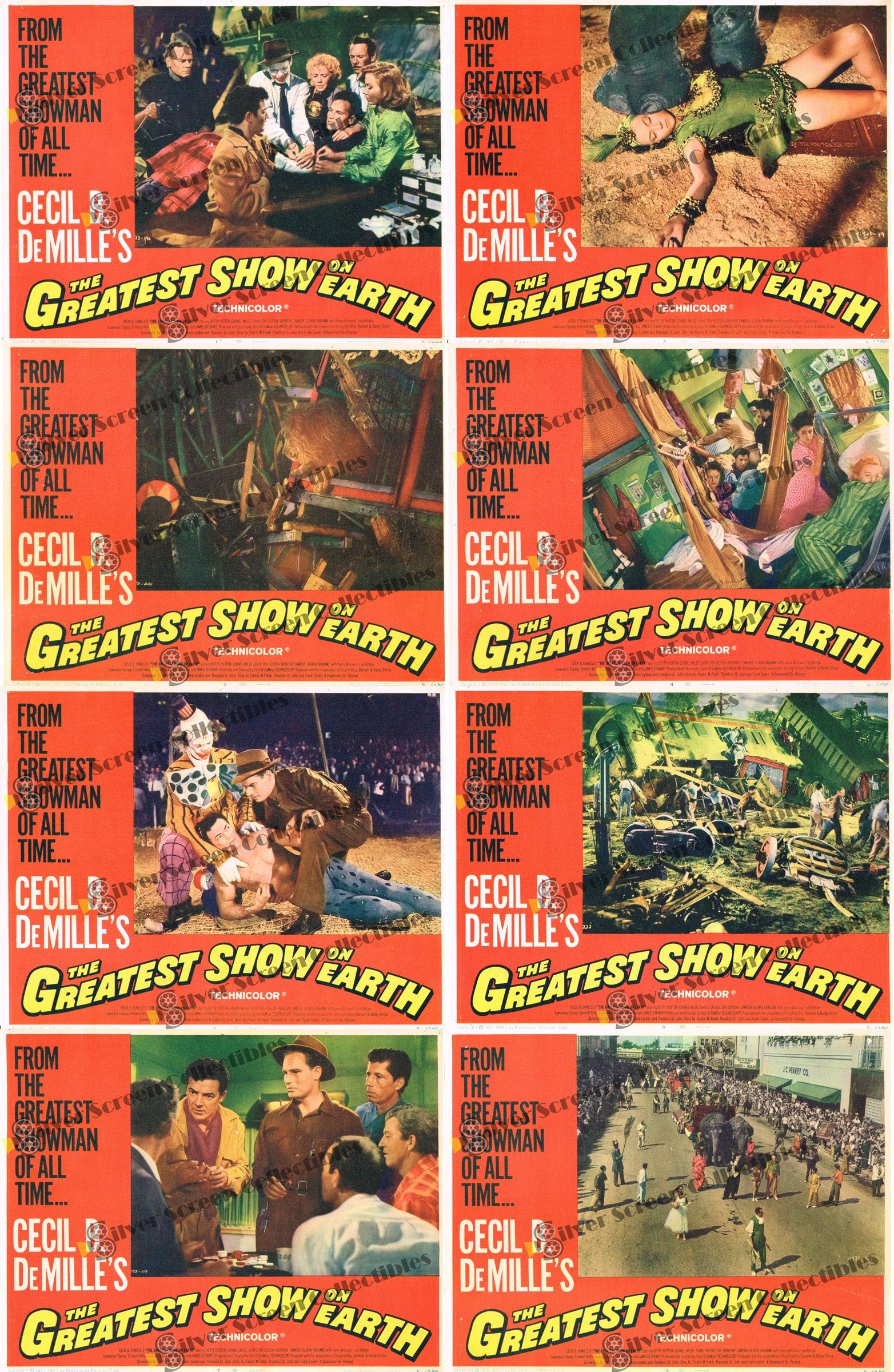 The Greatest Show on Earth (1952) Original U.S. Lobby Card SET of 8(11" x 14")