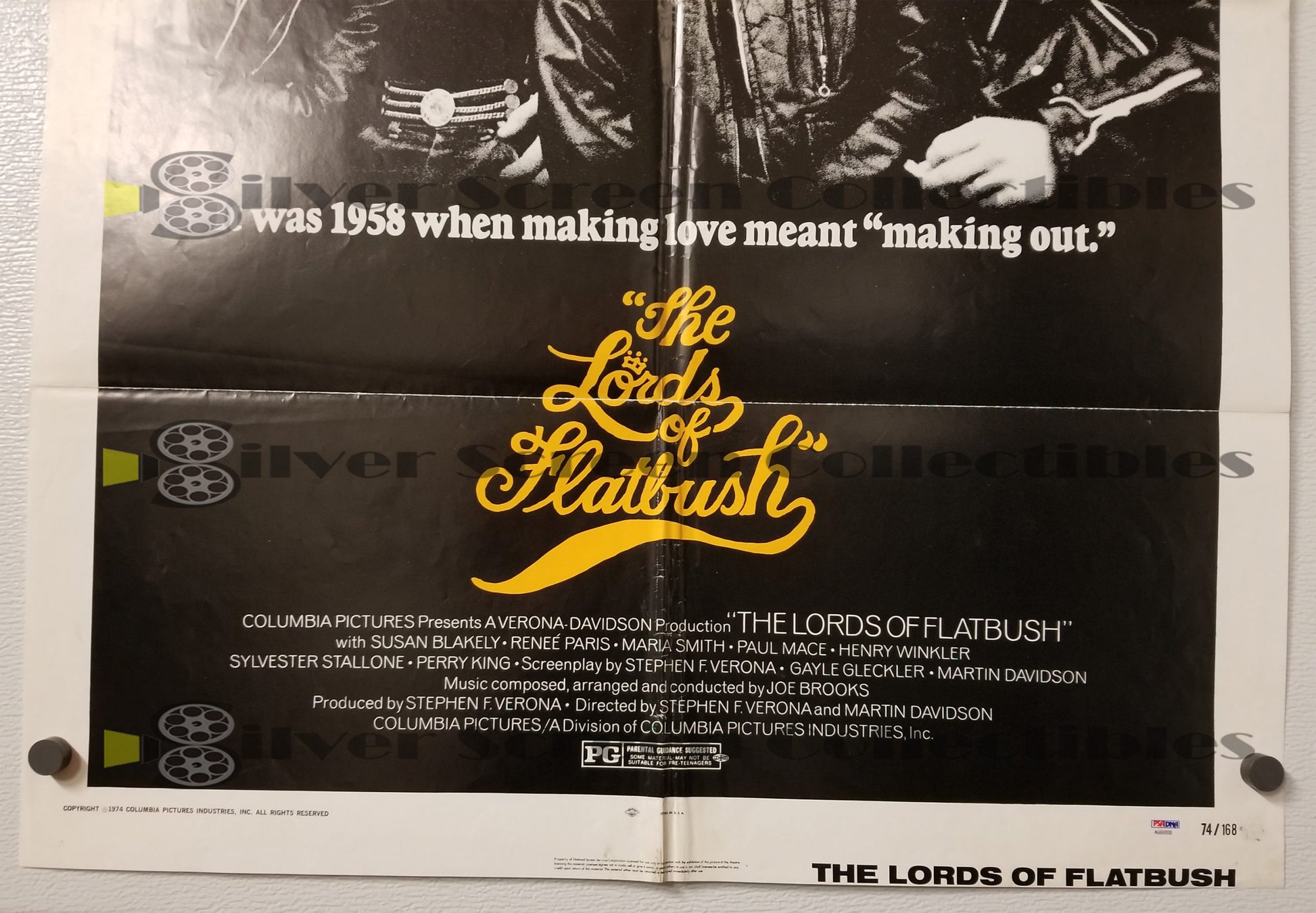 Directed by Martin Davidson and Stephen Verona, The Lords of Flatbush is a low budget film starring Perry King, Henry Winkler and Sylvester Stallone (who also wrote additional dialog). Set in the late 1950s, the coming-of-age story follows four Brooklyn teenagers known as The Lords of Flatbush. The Lords chase girls, steal cars, play pool and hang out at a local malt shop. The film focuses on Chico (King) attempting to win over Jane (Susan Blakely), a girl who wants little to do with him, and Stanley (Stallone), who impregnates his girlfriend Frannie, who wants him to marry her.