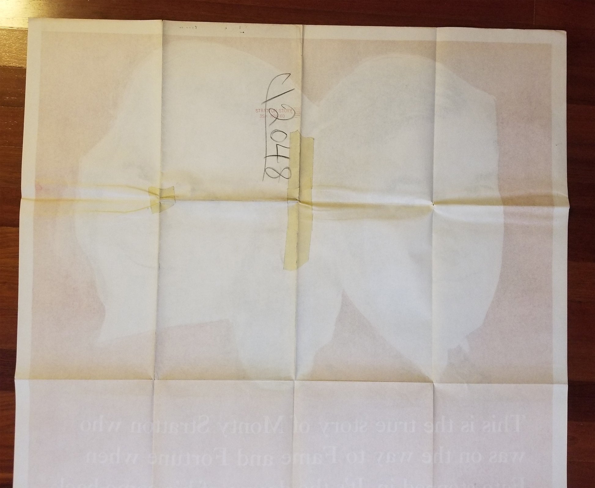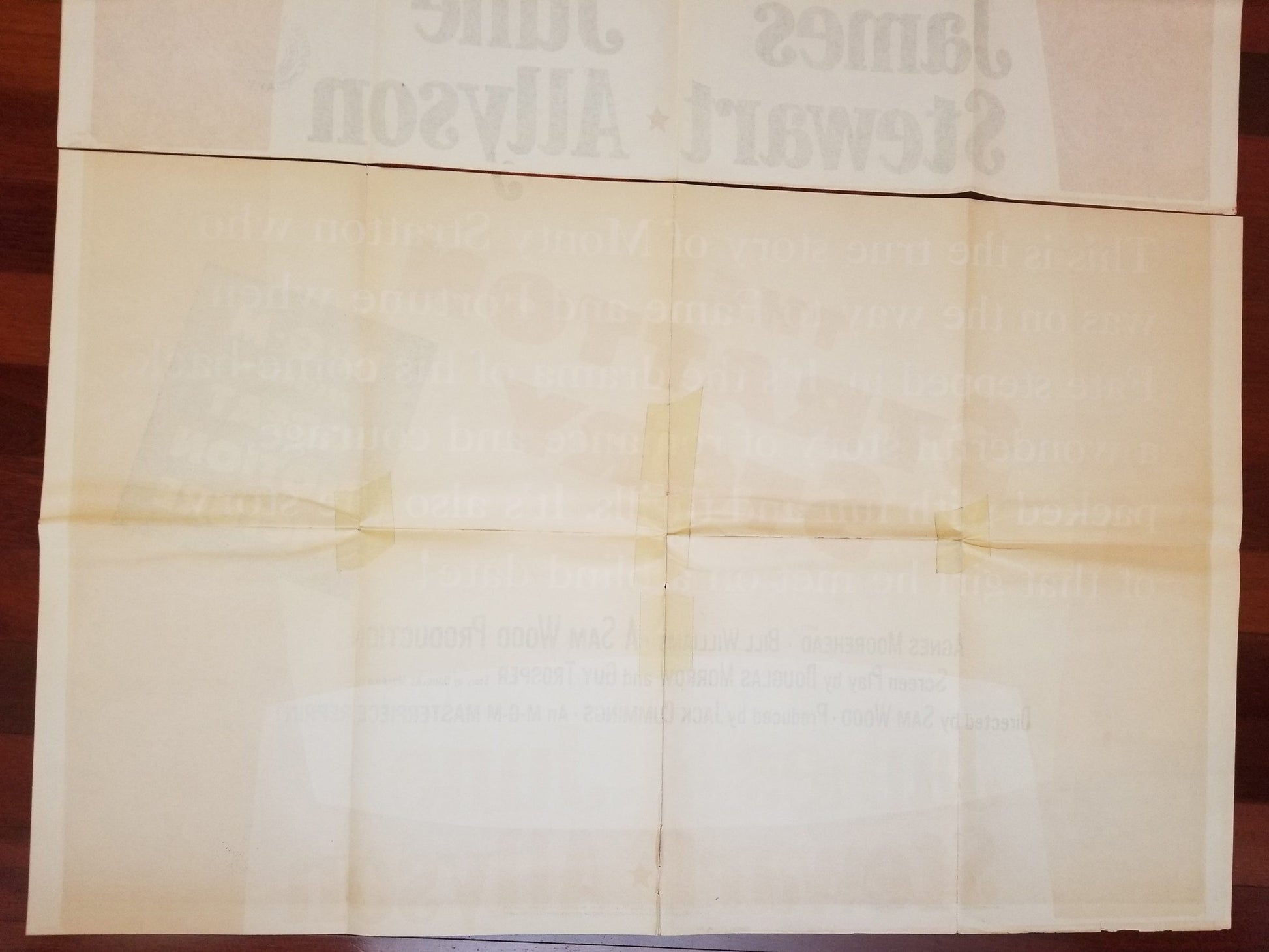 Condition: Very Good - With fold wear and minor paper loss, some of which are taped on the reverse. Note that this poster was printed on two separate sheets of paper, which theaters would then glue or tape together for display.
