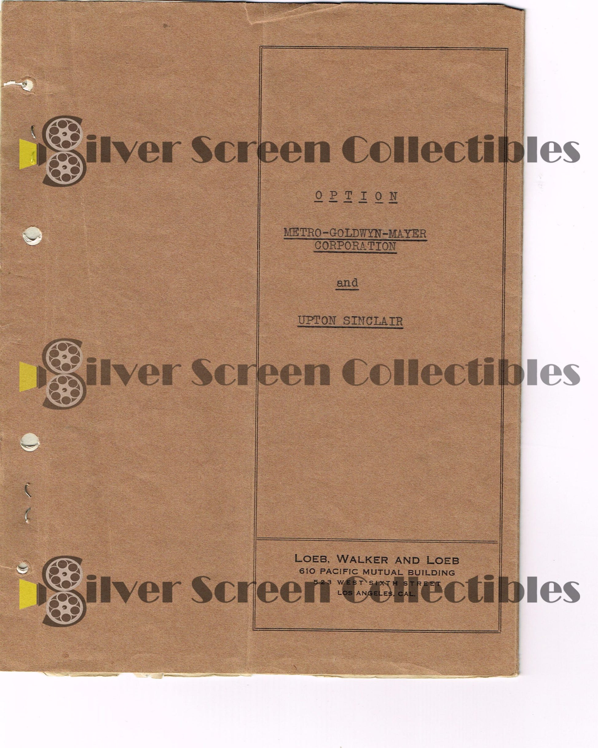 Four page contract in which Sinclair signs over his rights to his novel "The Wet Parade" to Universal Pictures, who released a film by the same name in 1932.Inscription: