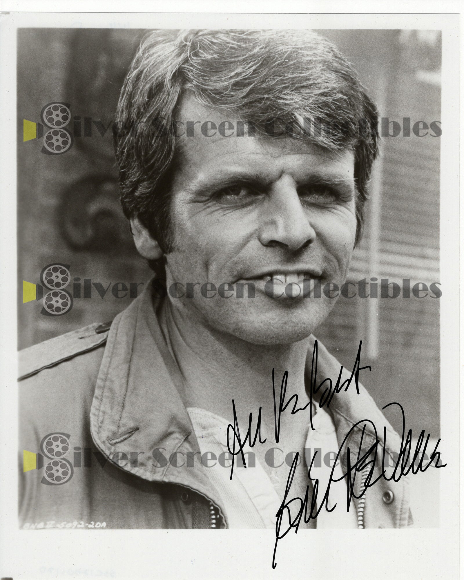 Nice repro headshot of a smiling Devane Inscription: All the best, Bill Devane